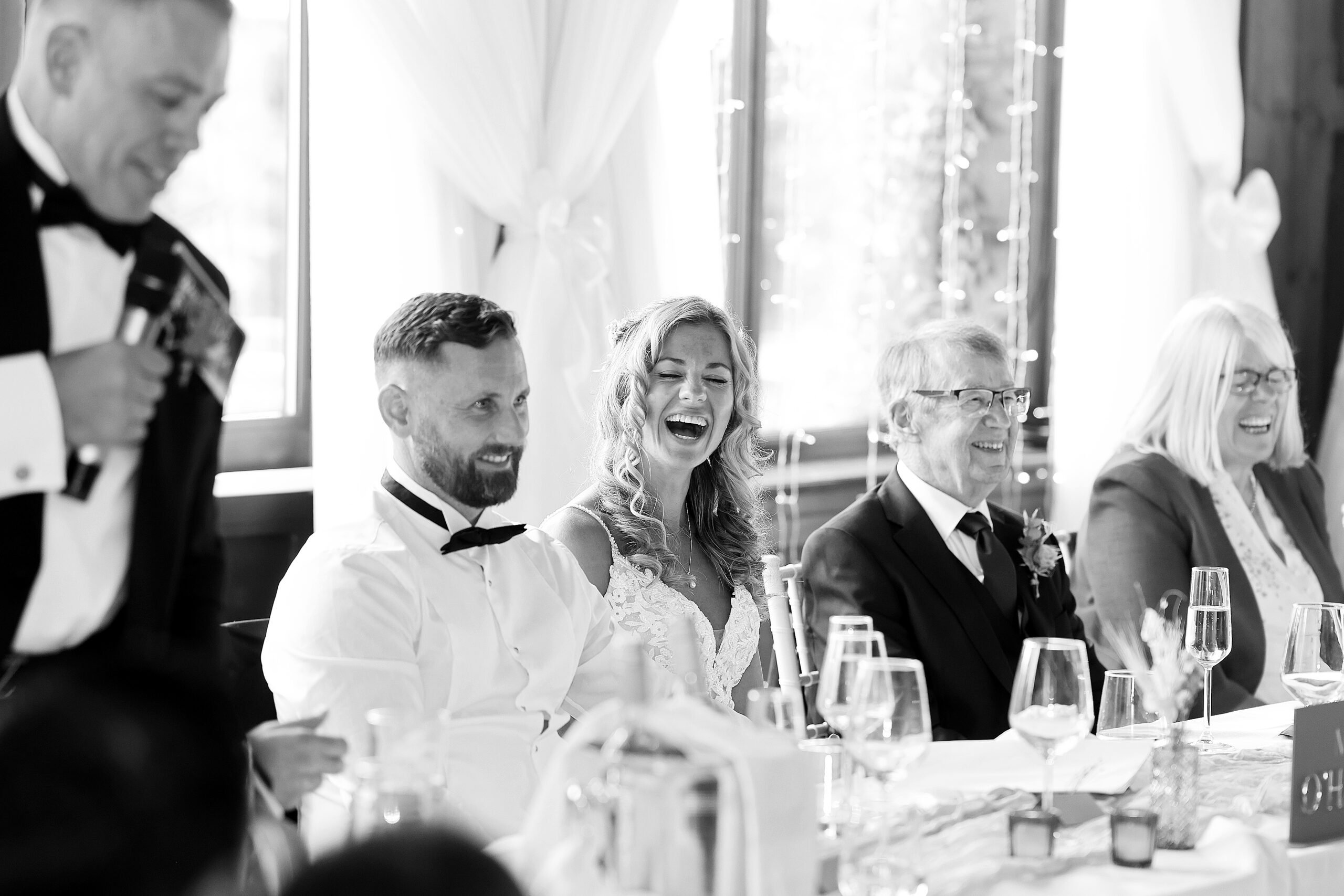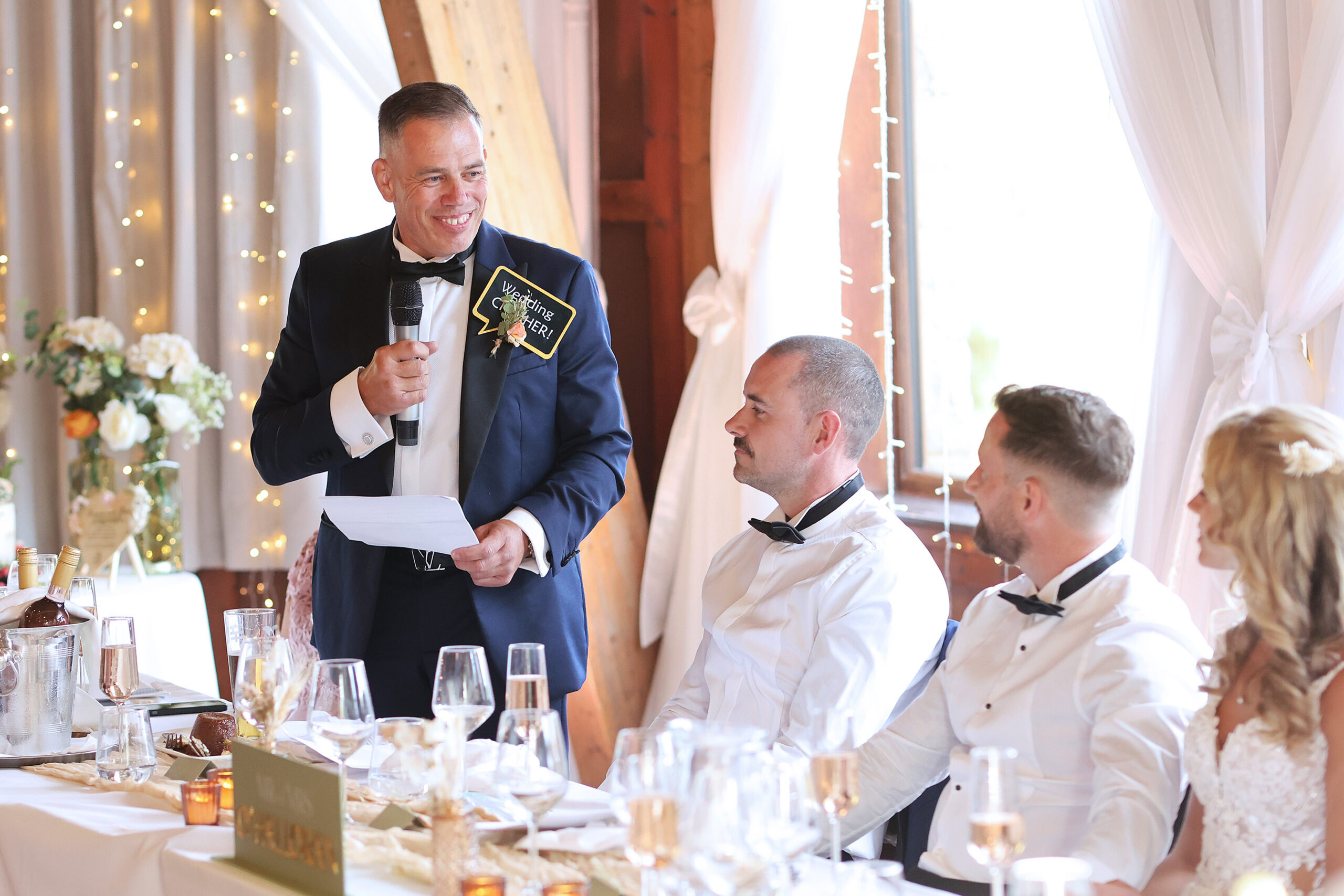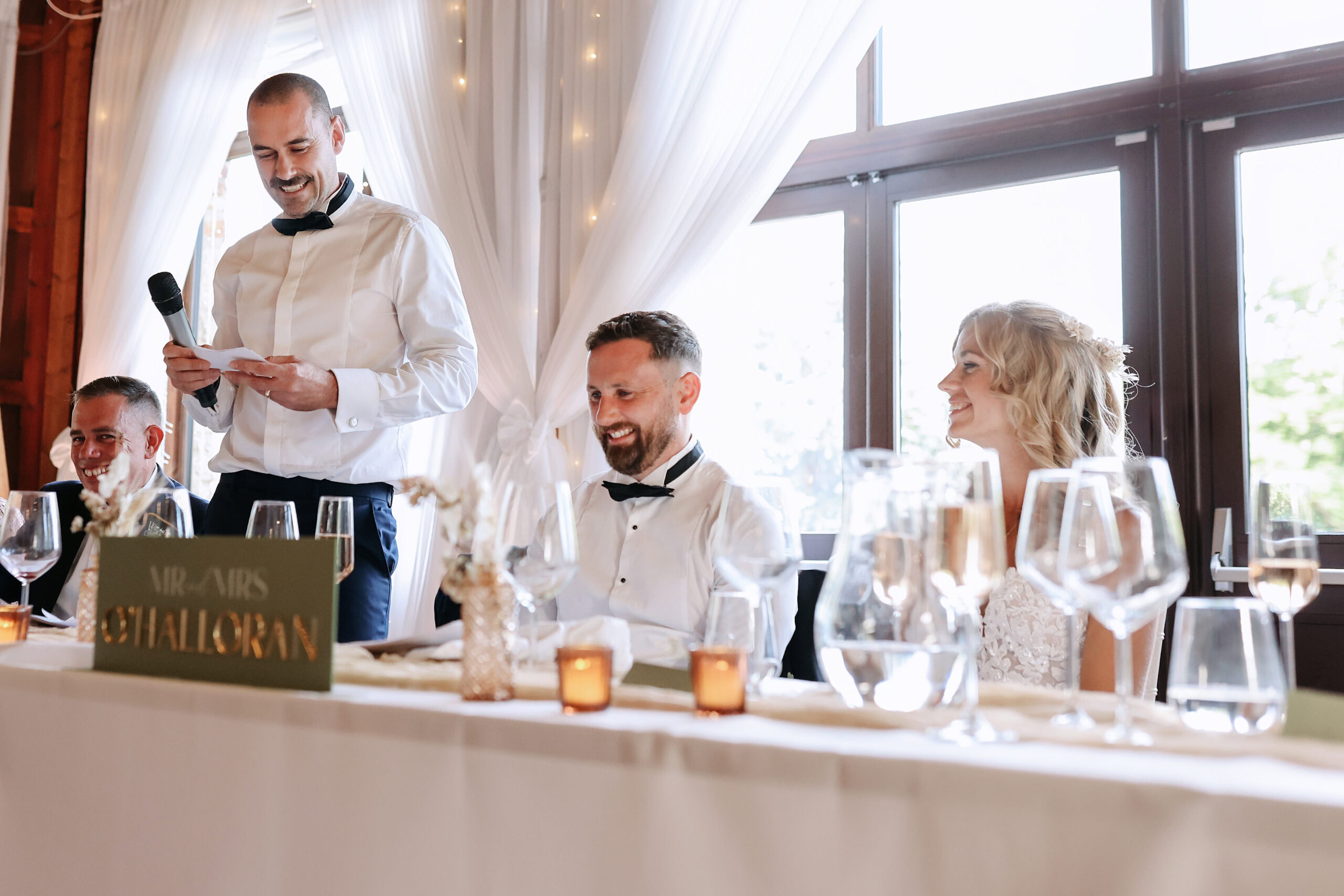 The celebrations moved inside for the wedding breakfast and the speeches, which were equal parts heartfelt and hilarious. Stories were shared, glasses were raised and the room was filled with laughter.