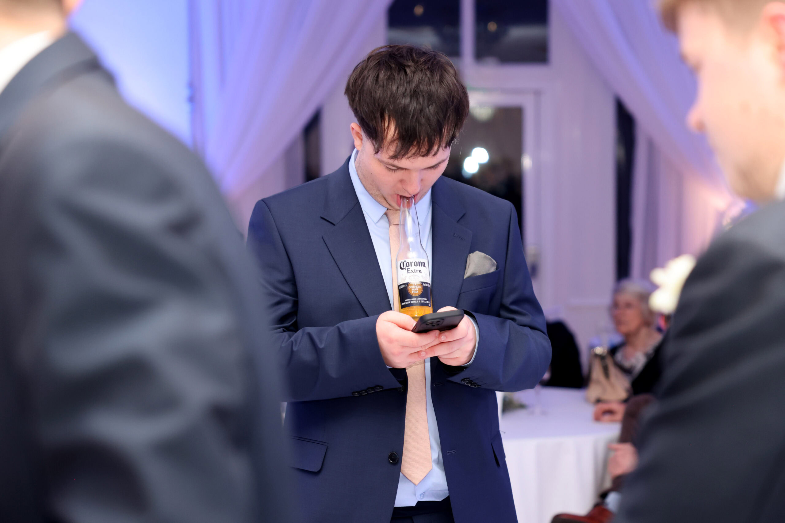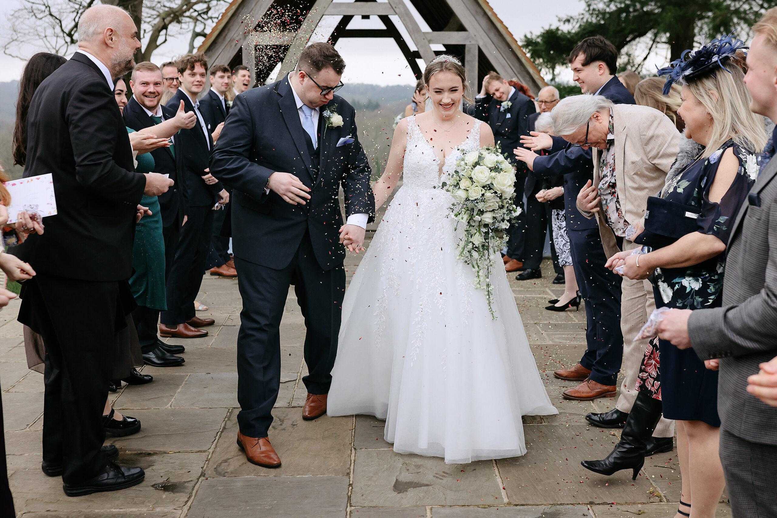 After the ceremony everyone headed outside for confetti and with a chilly breeze blowing across the grounds it was quickly back inside for drinks and canapés while the couple slipped away for a few quiet moments together around the grounds.