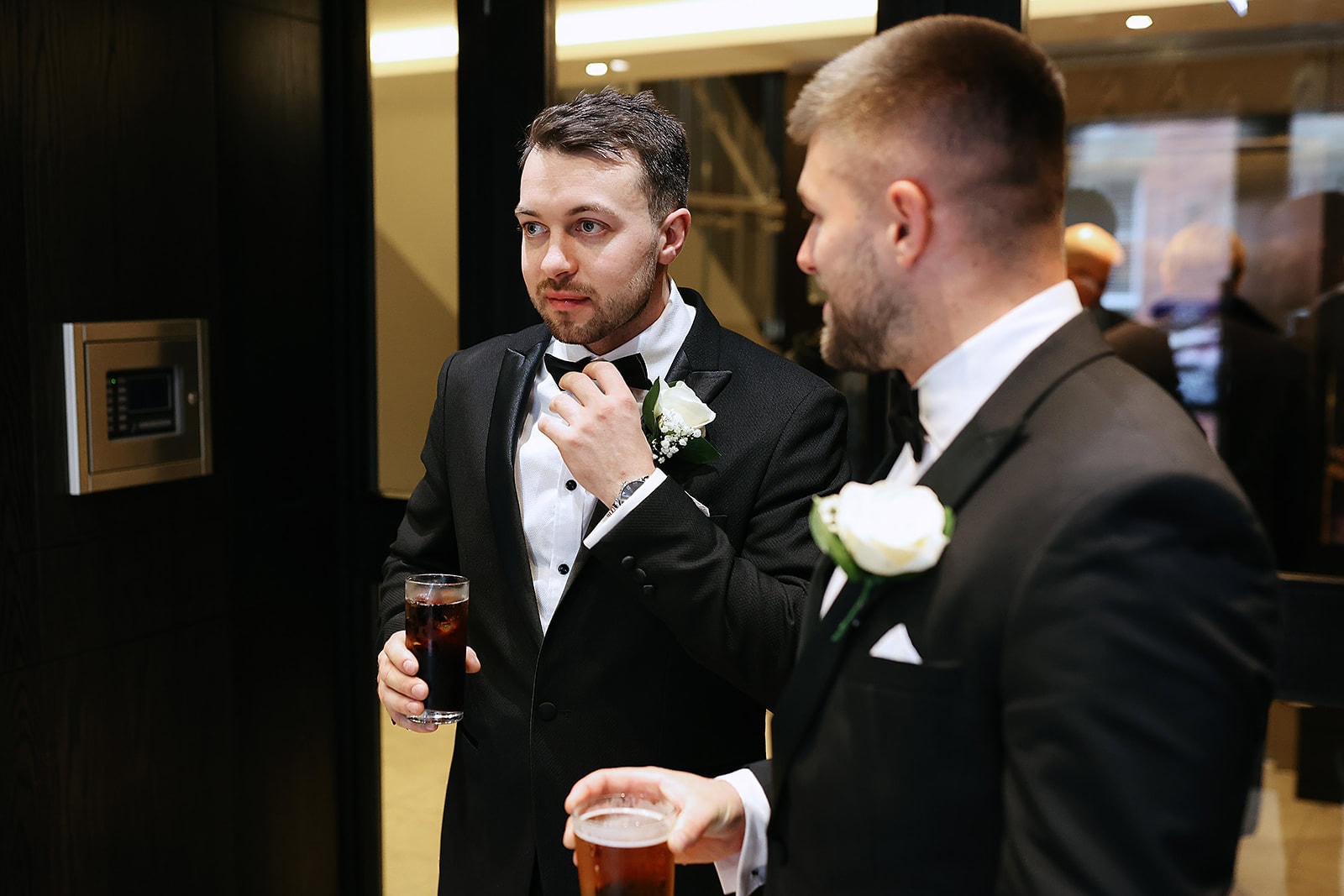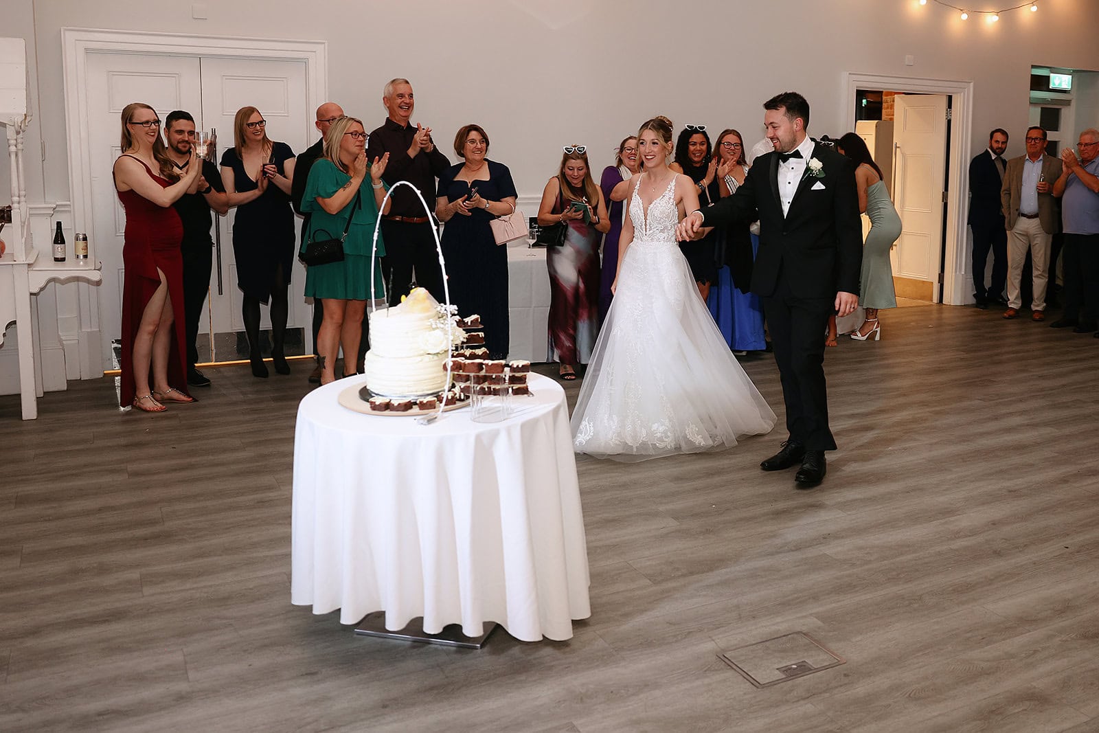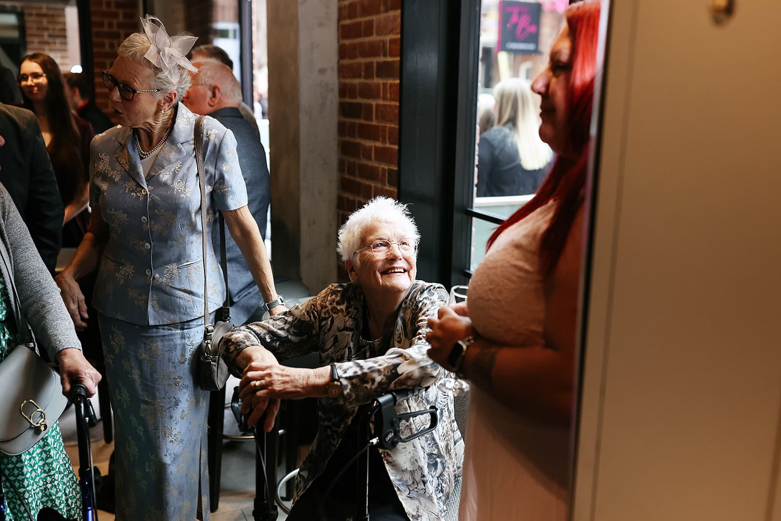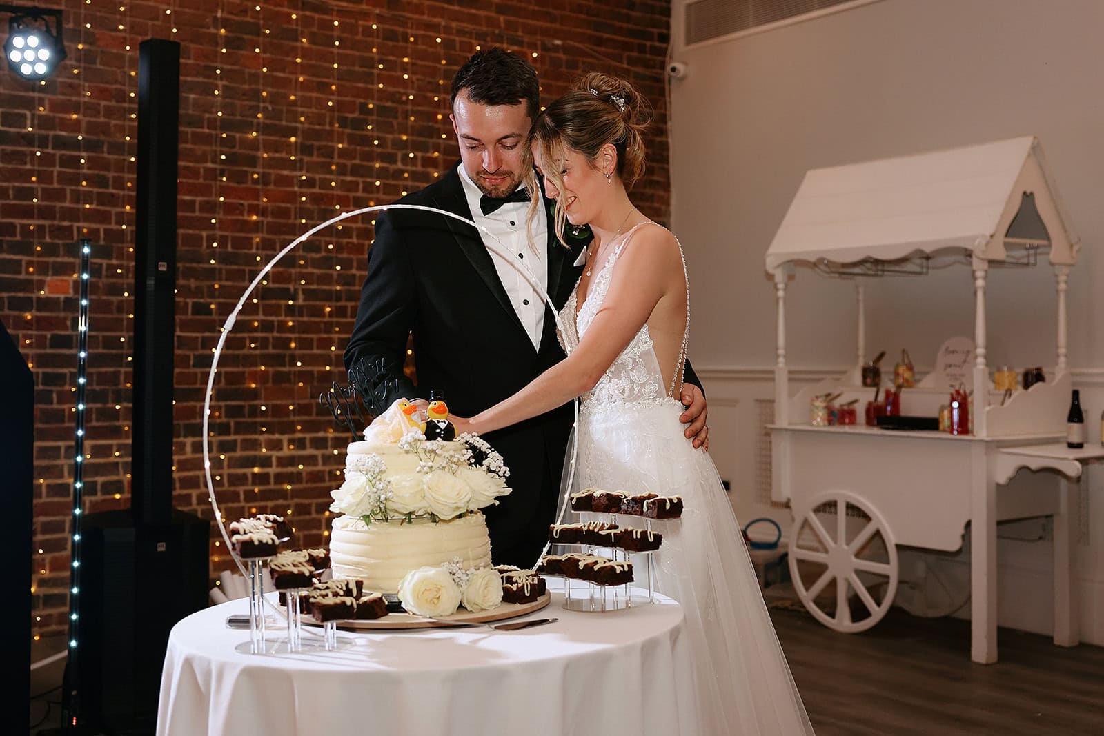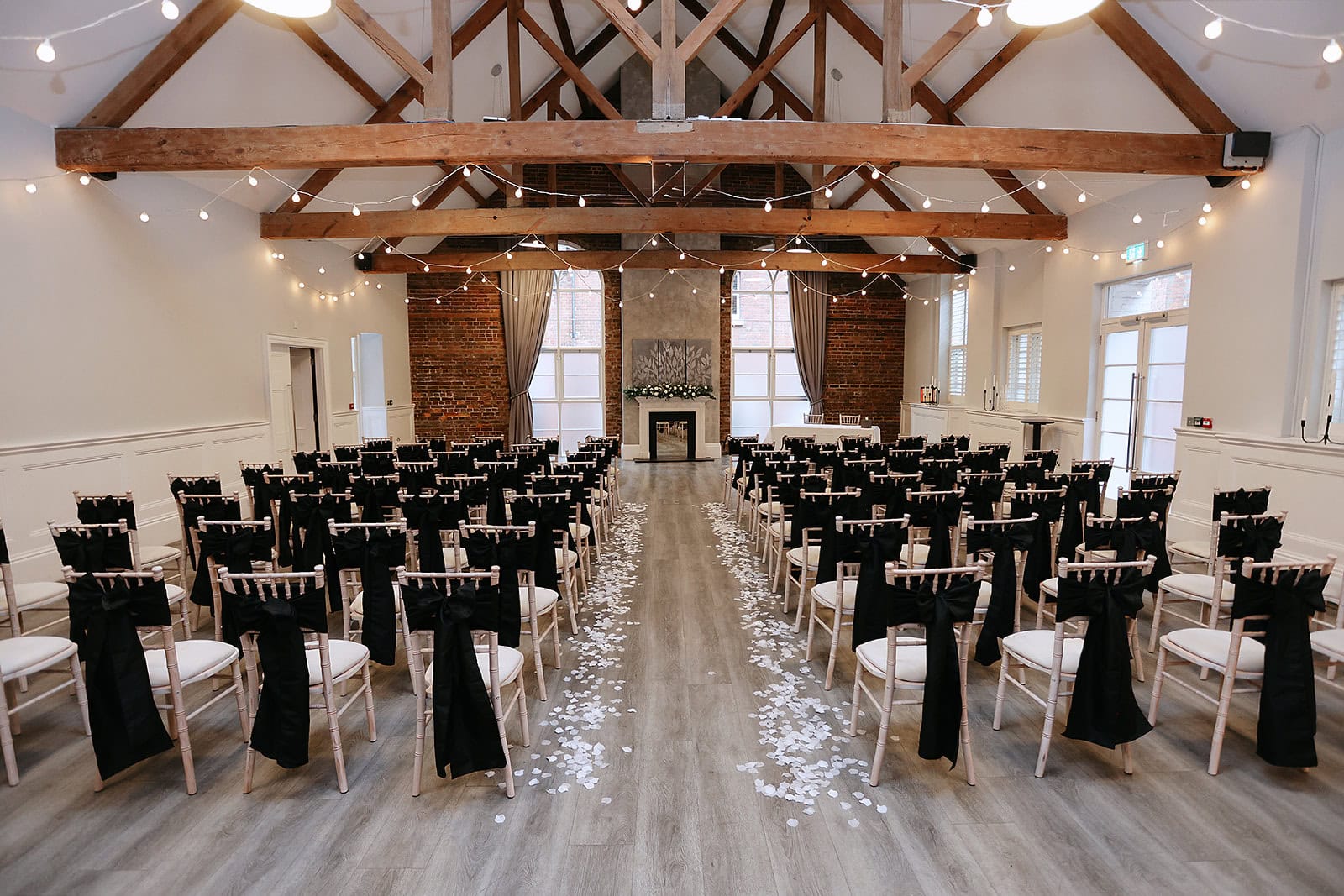 The ceremony took place in the beautifully light-filled Gallery space. As Katie walked down the aisle, the room fell into that quiet, emotional stillness that says everything about the moment. The rings had been placed under two unsuspecting guests chairs who became unexpected ring bearers.