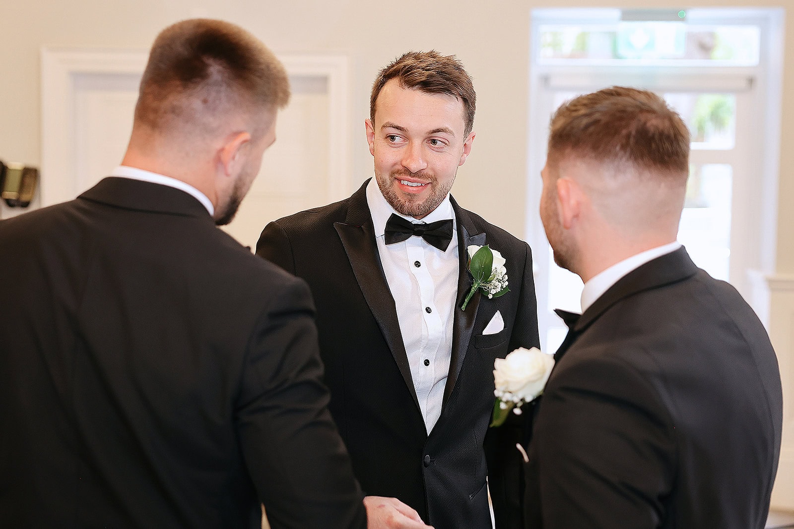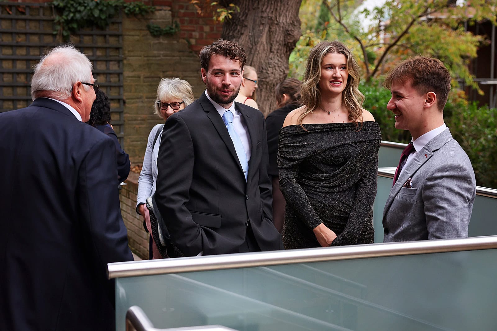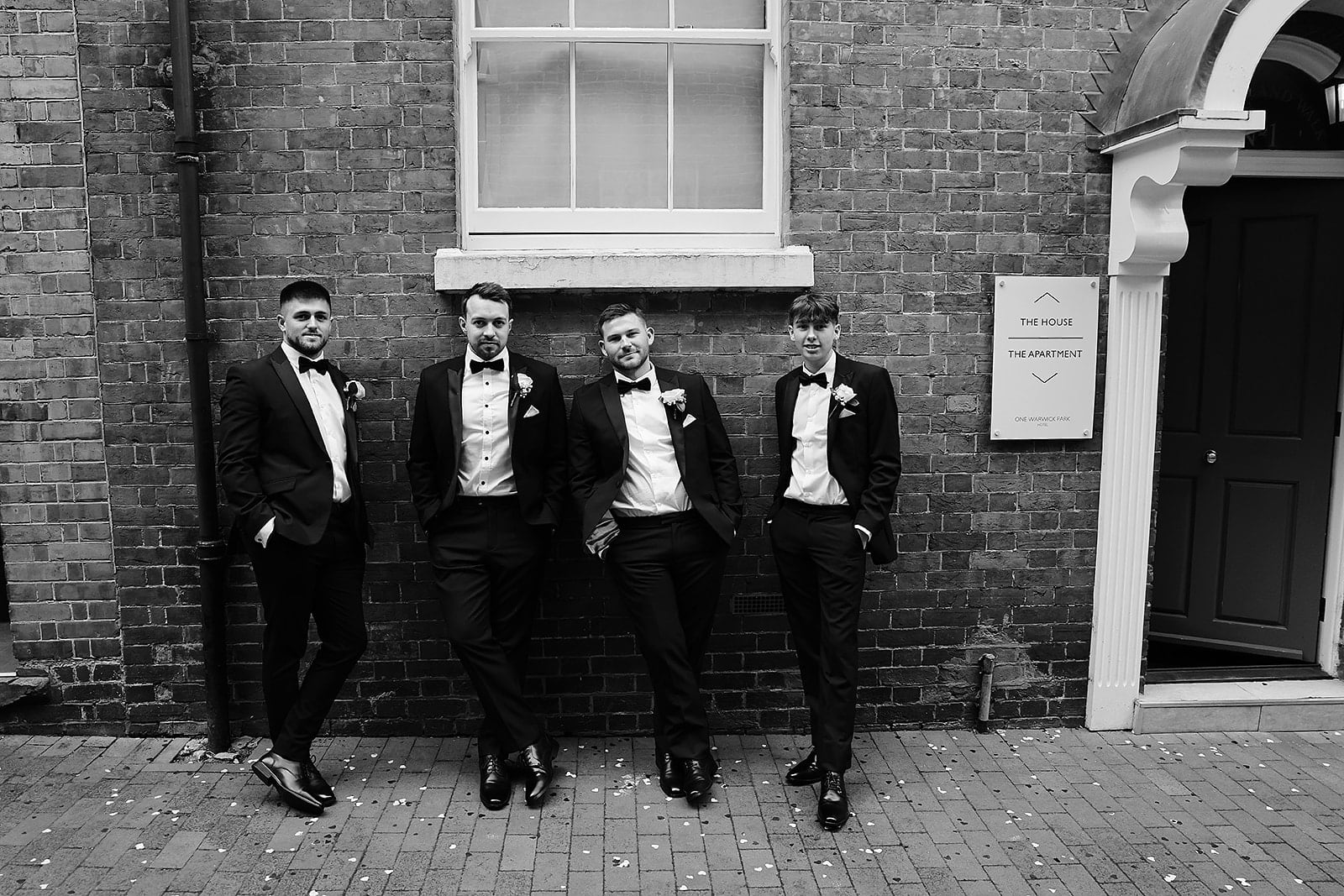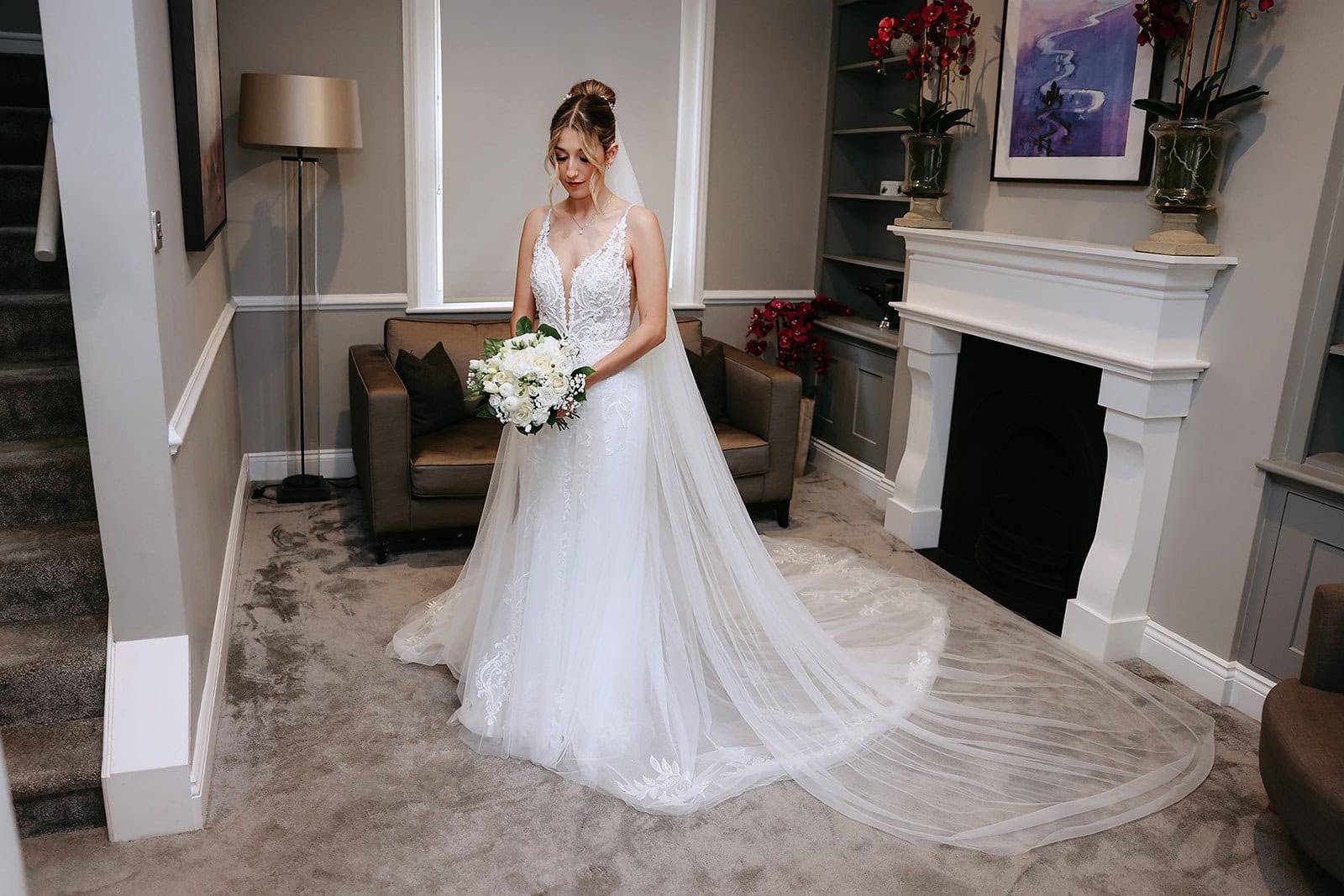 The day began at One Warwick Park, where both the bridal party and guests were welcomed by the hotel’s stylish interiors and softly lit spaces. Katie got ready with her bridesmaids in the one of the bright and spacious luxury suites, surrounded by Family, & Friends creating an excited morning buzz. Katie’s dress was modern, understated and full of movement — perfect for the relaxed, joyful feel of the day. Meanwhile, James and his groomsmen were just a short walk away, adjusting buttonholes before guests began to arrive.