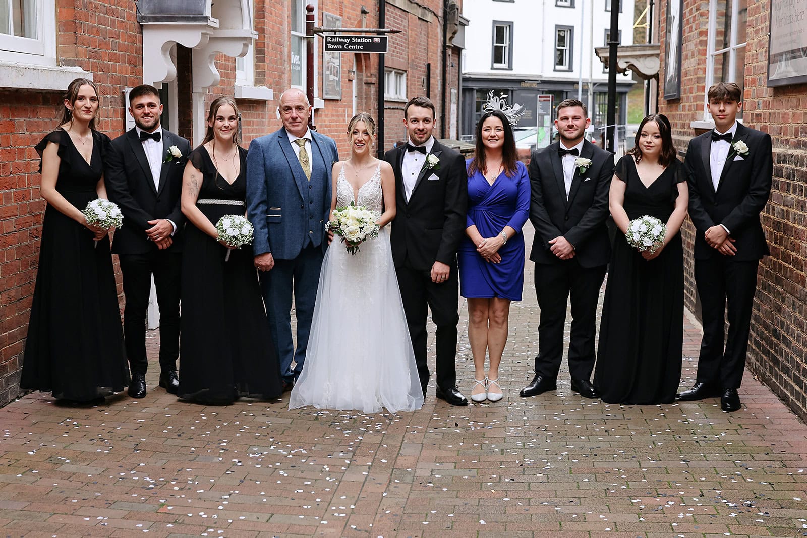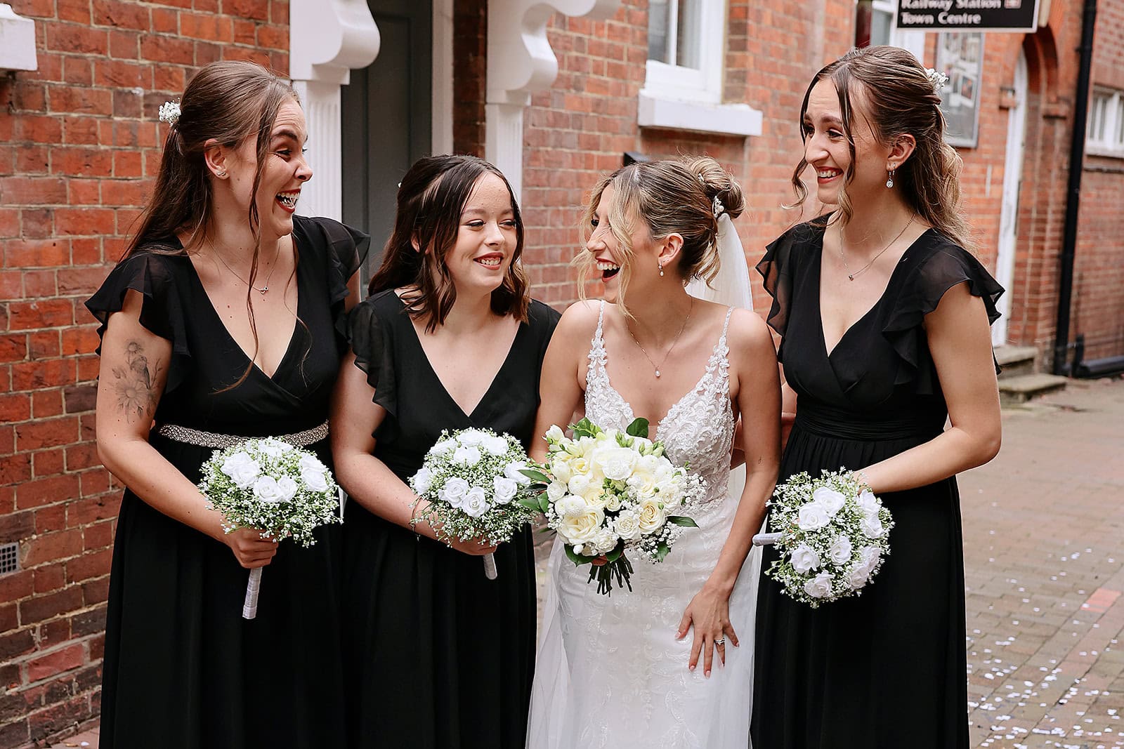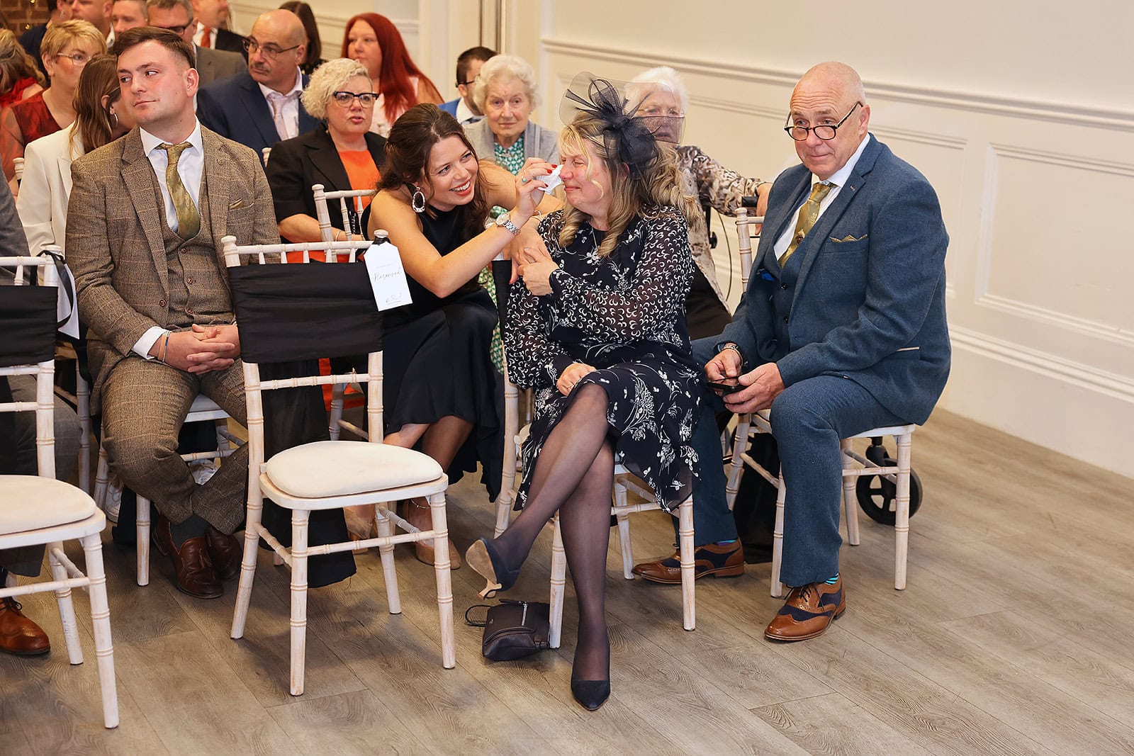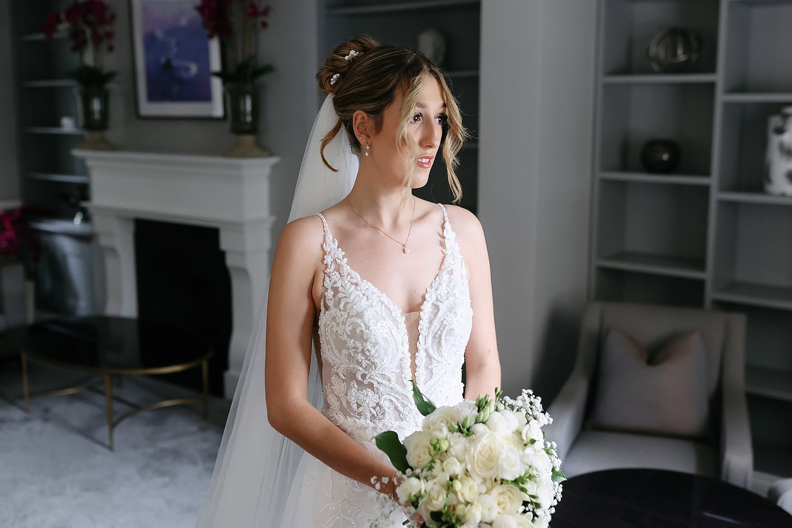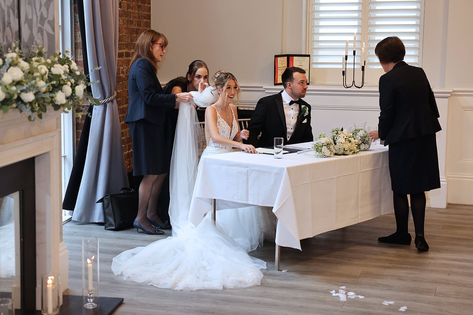 The day began at One Warwick Park, where both the bridal party and guests were welcomed by the hotel’s stylish interiors and softly lit spaces. Katie got ready with her bridesmaids in the one of the bright and spacious luxury suites, surrounded by Family, & Friends creating an excited morning buzz. Katie’s dress was modern, understated and full of movement — perfect for the relaxed, joyful feel of the day. Meanwhile, James and his groomsmen were just a short walk away, adjusting buttonholes before guests began to arrive.
