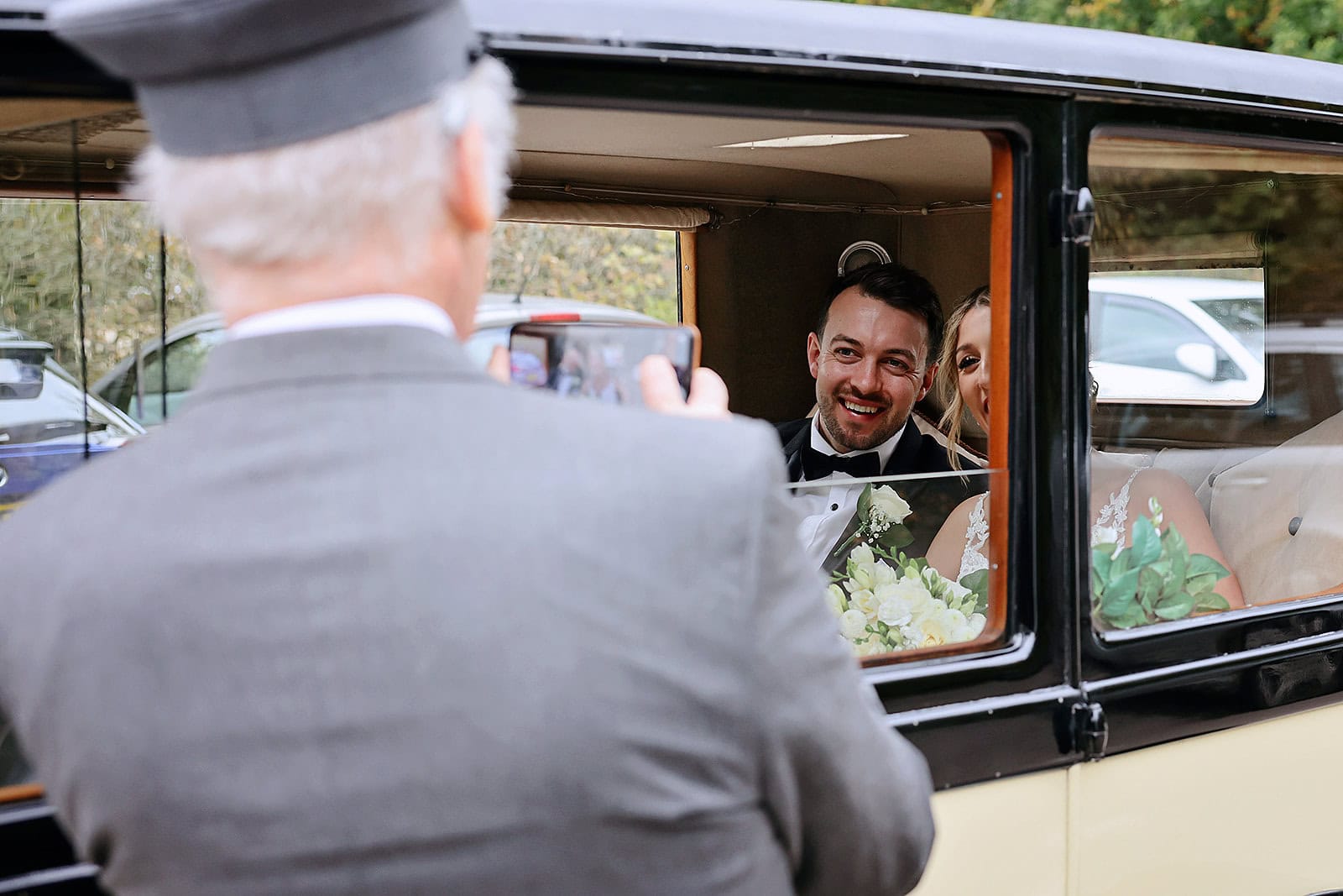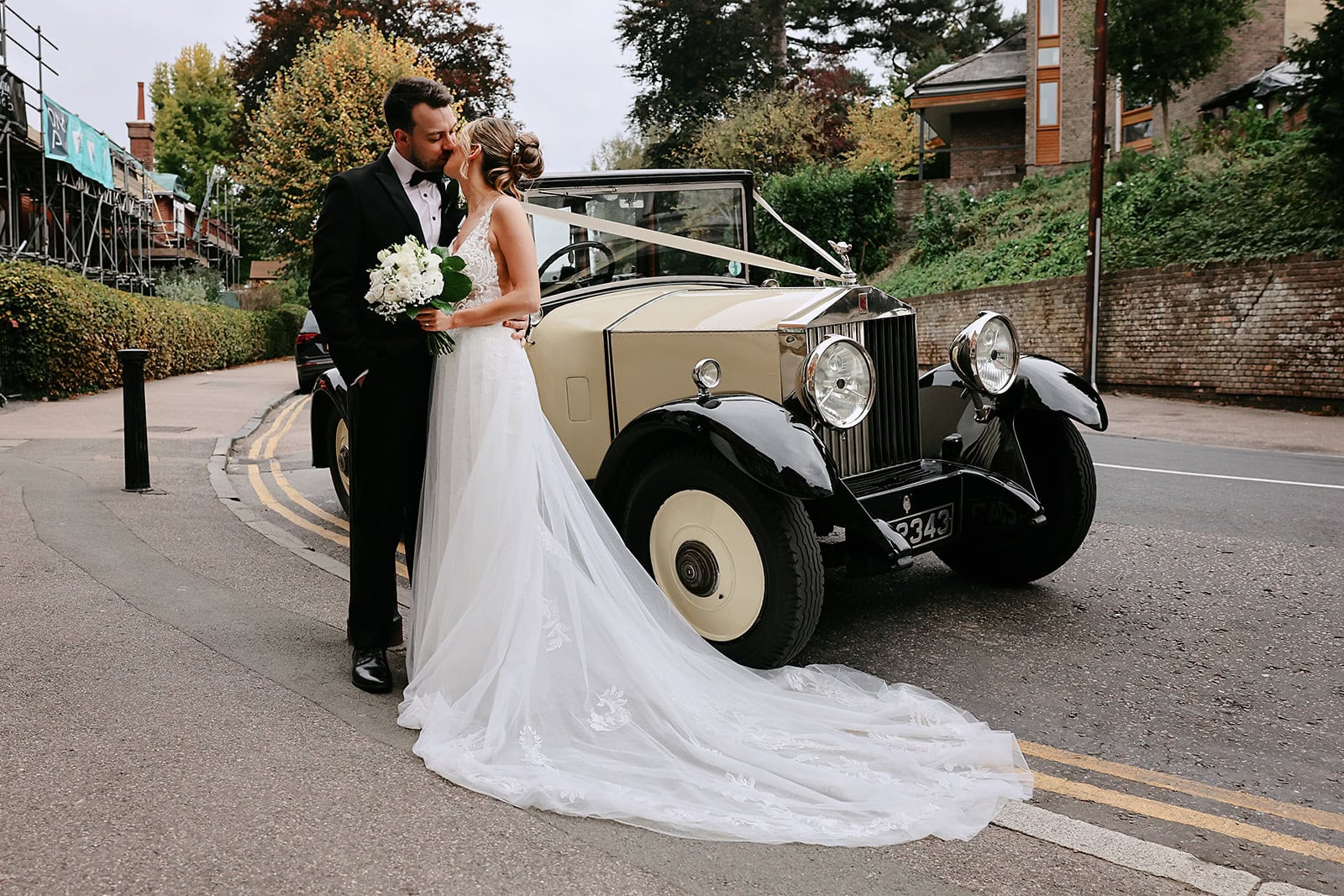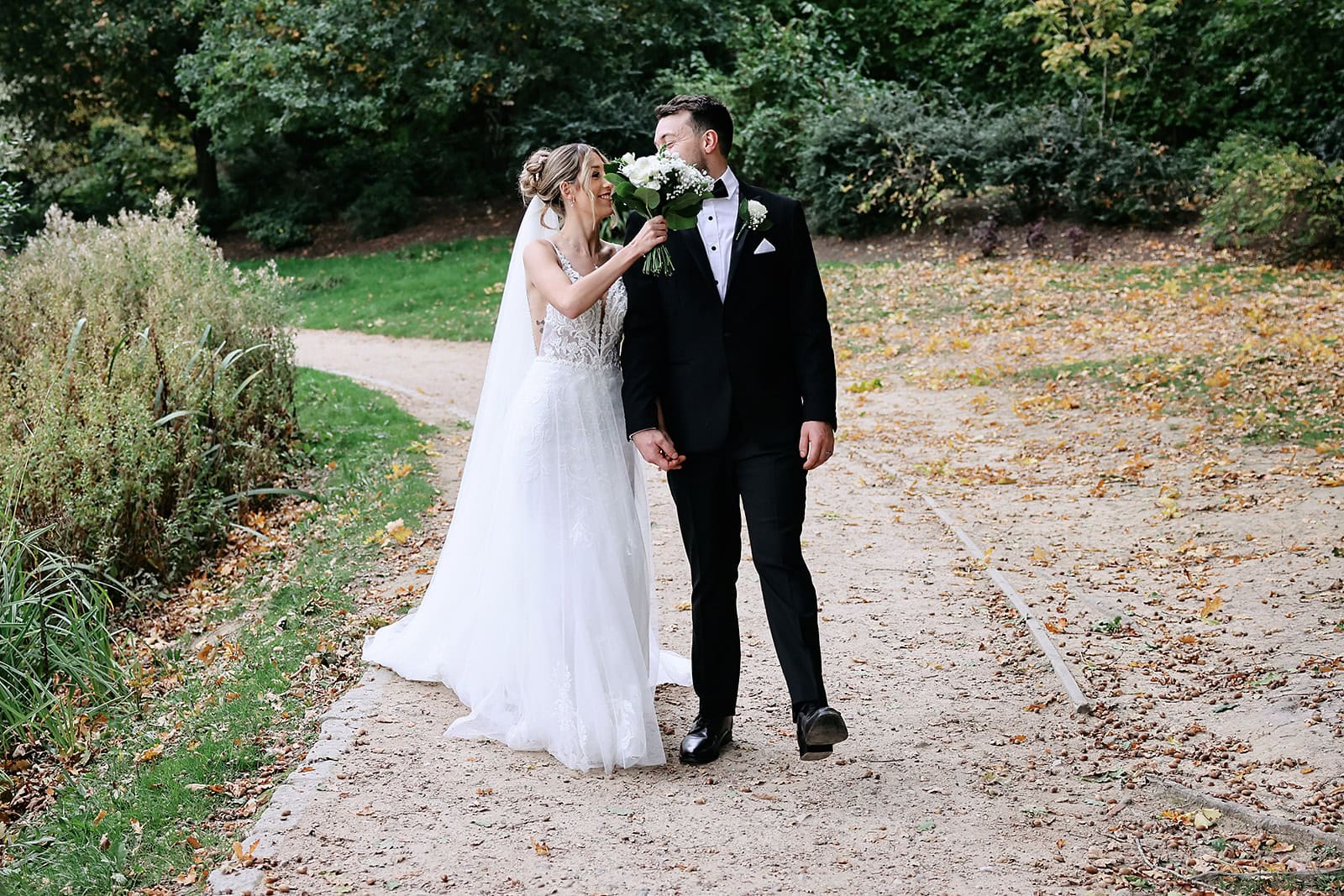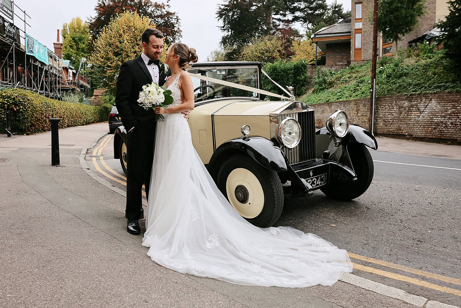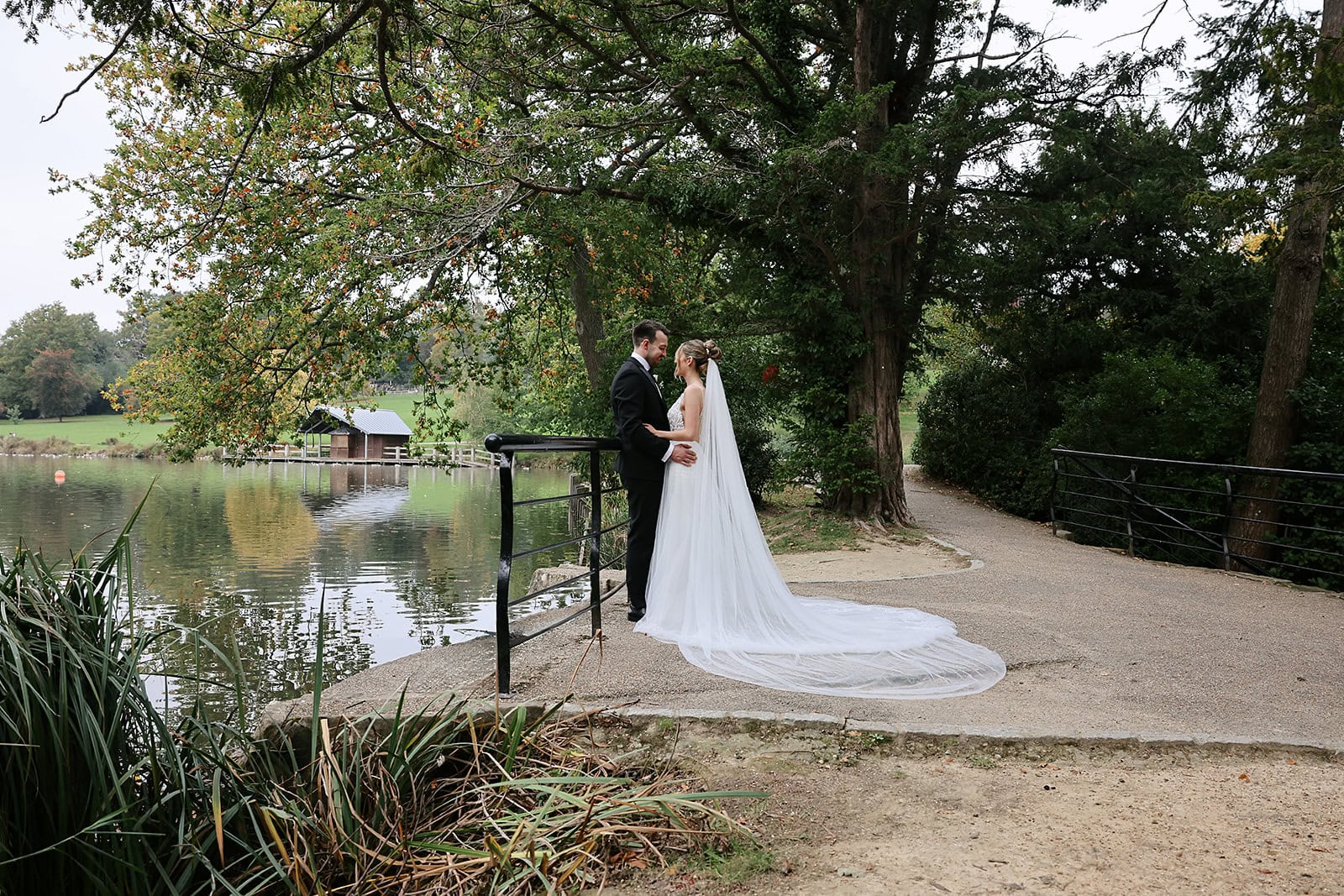 After the ceremony, Katie and James travelled in a vintage Rolls Royce to nearby Dunorlan Park for their couple portraits. The autumn colours were at their best, with warm sunlight filtering through the trees — the perfect natural backdrop.