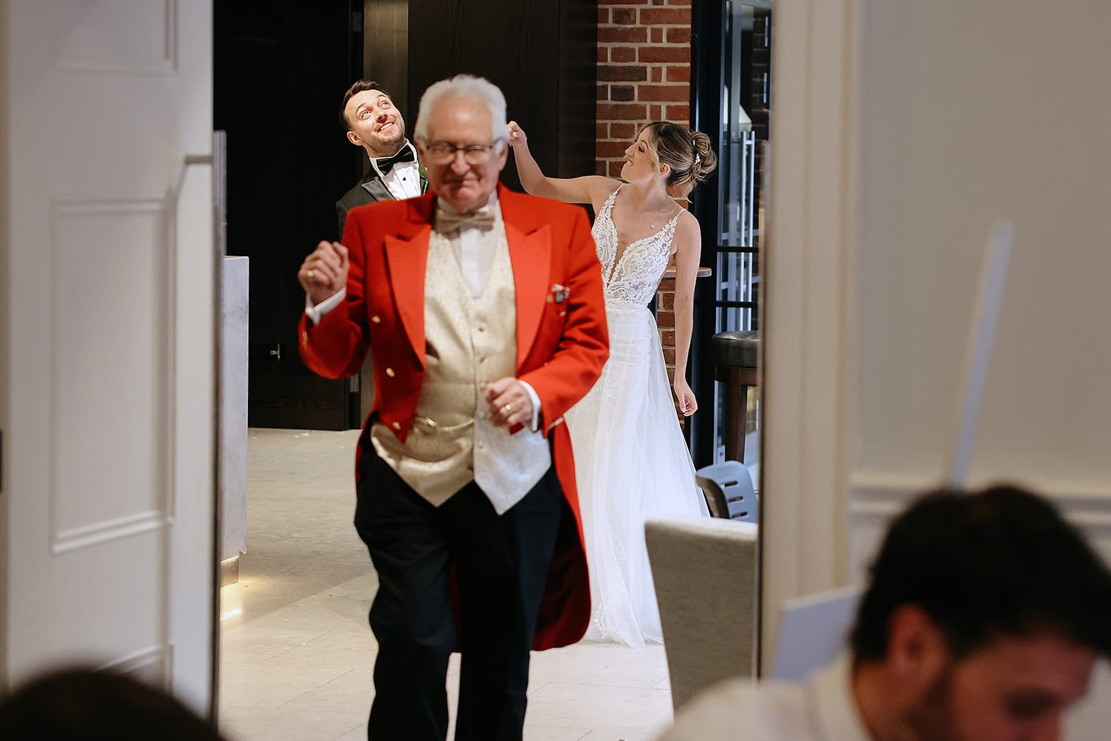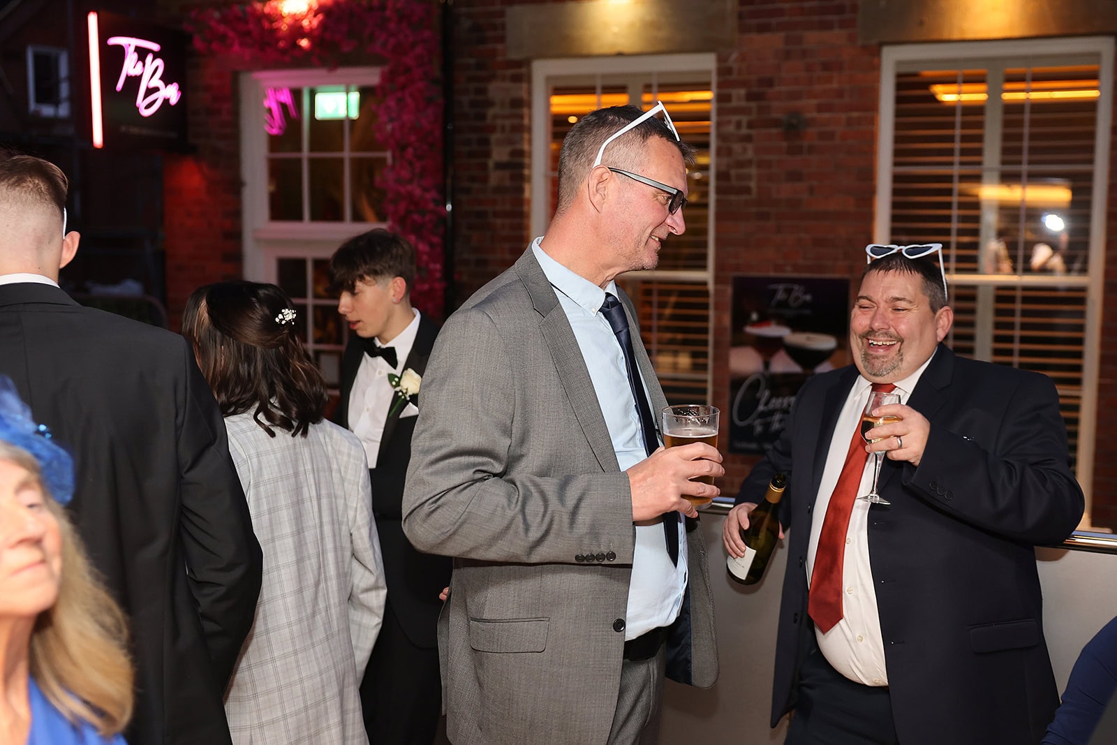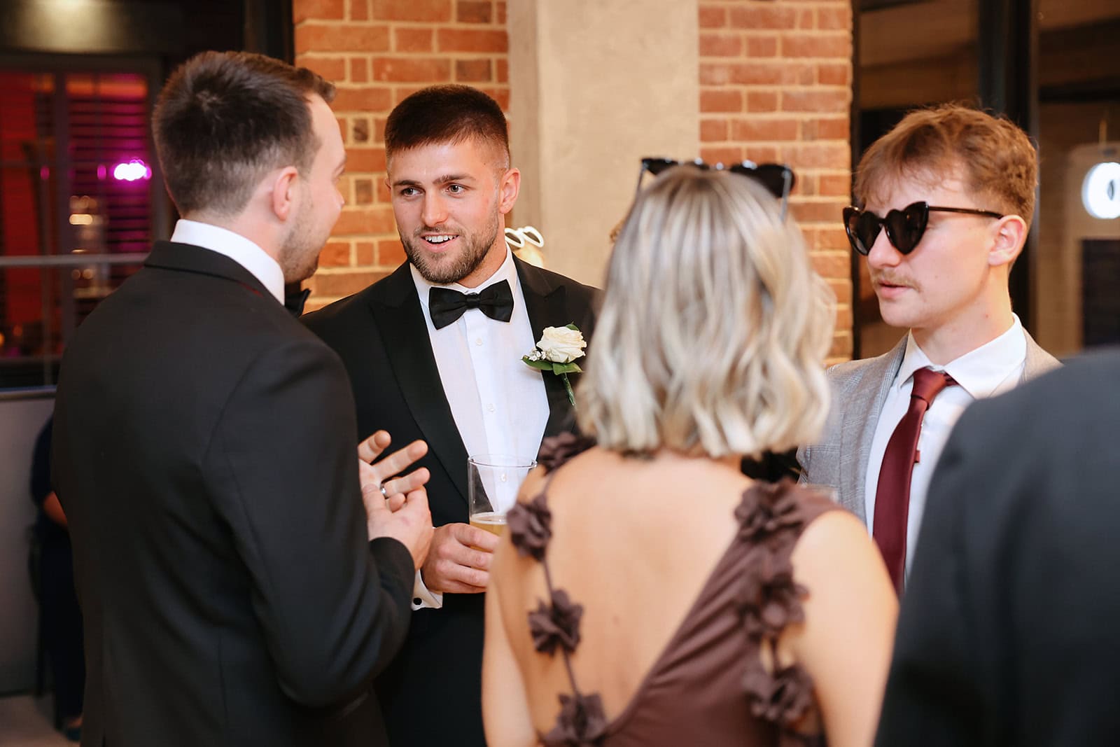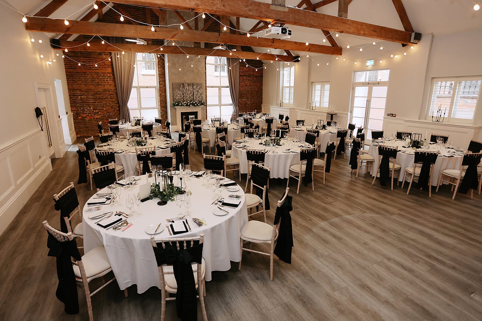 Returning to One Warwick Park, guests gathered for the drinks reception, filling the lounge and bar spaces with laughter and conversation. The wedding breakfast room looked incredible — candlelight, seasonal flowers and thoughtful details throughout.